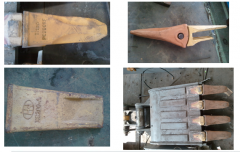 (扒渣機配件-挖斗配件圖) 斗齒=齒尖+齒銷+齒座,公司的斗齒采用鍛造工藝 (扒渣機配件-工作臂配件圖) 整個工作臂架:由挖斗、挖斗油缸、鏈架1、鏈架2、小臂油缸、小臂、大臂、大臂油缸、大臂油座、回轉(zhuǎn)油缸 工作部分總計:銷軸11根、銅套12個、中心回轉(zhuǎn)銅套...